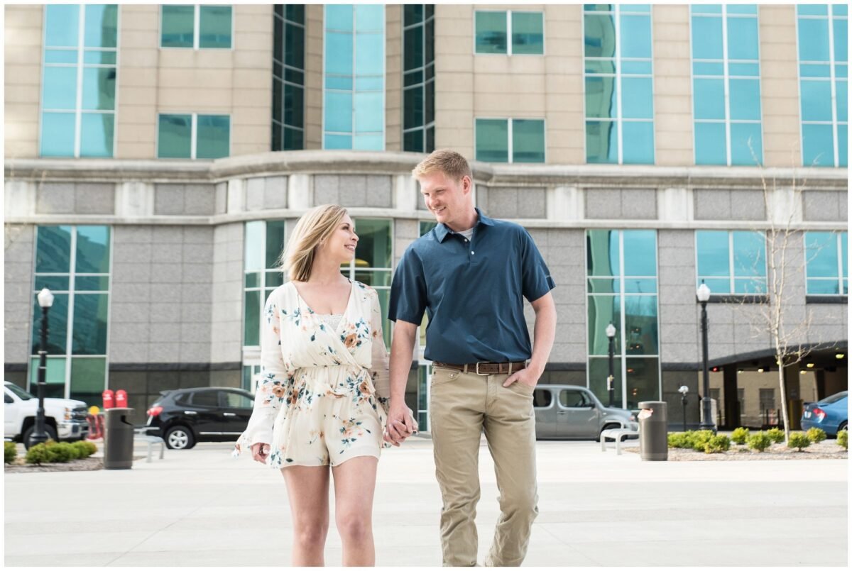 The third time is a charm! Wednesday night, Dan, Kiersten and I met in downtown Fort Wayne for their engagement session. It was the third time that we had it on the books. Due to Indiana weather, we had to reschedule two previous dates.