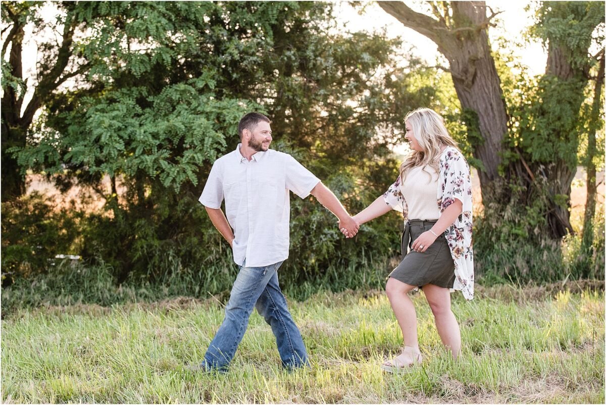 I don’t know about you, but I have thoroughly enjoyed the Summer evenings that we’ve been having. We originally scheduled their session for just a little bit later, but Jacob and Madi both wanted photos in their wheat field and the wheat started turning much quicker than anticipated. There is something so beautiful about the warm, honey colored evening light reflecting off of a what field and a couple in love! It’s a perfect combination.