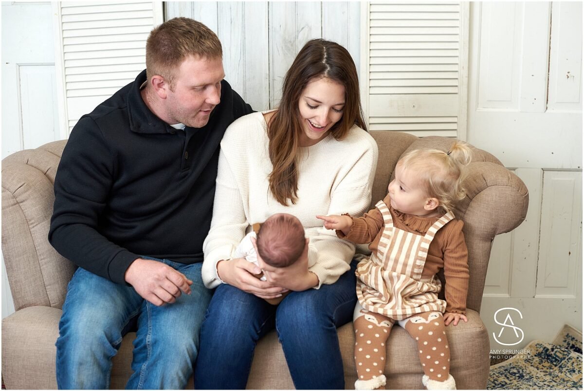 Keep scrolling through the maternity photos and you will see Lincoln’s newborn photos along with some really precious family photos and ones of big sis, Amelia. She’s stinking cute!