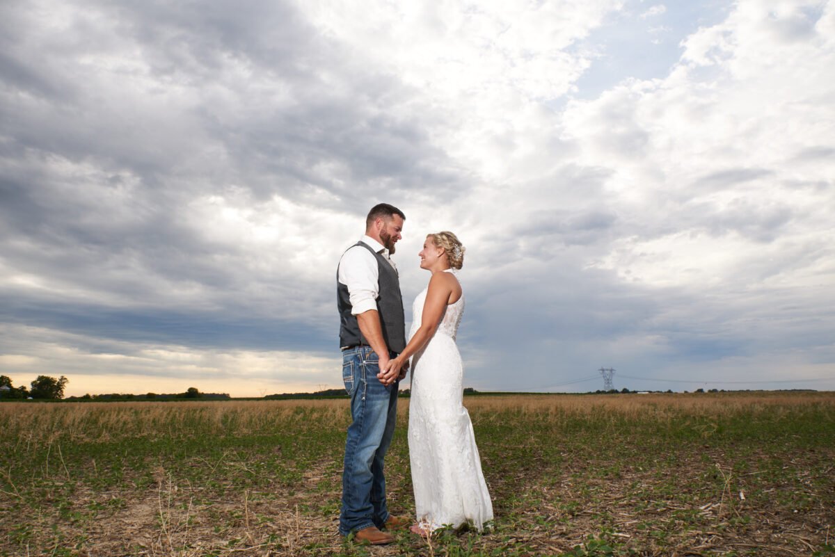 WEDDING DATE: June 25, 2022 – LOCATION: Swiss Heritage Village, Berne, IN – RECEPTION: Private property, Celina, OH – RINGS: Kay Jewelers – WEDDING DRESS: David’s Bridal – BRIDESMAID DRESSES: Azazie – MEN’S VESTS: The Mr. Shoppe, Coldwater, OH – SALON: His and Hers, Rockford, OH – MAKEUP: Ciara Limon – RECEPTION DECOR: Evented by Fate – CATERING: Ike’s Catering – CAKE/CUPCAKES: Dawn Beck – DJ: Fat Cats