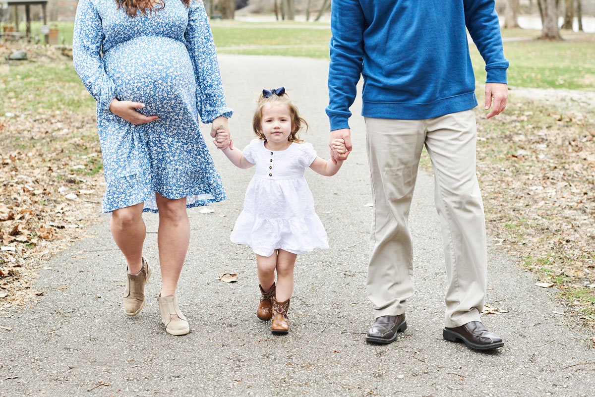 The day we met for maternity photos was freezing cold. It may not look like it here, but it was frigid. Big sister was a trooper. She stayed wrapped up in a blanket in her wagon when she wasn’t needed for photos. I think this maternity session was done in record speed and we were all happy to get into our warm cars at the end.